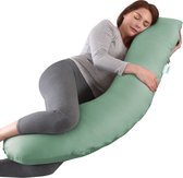 Litollo® Zwangerschapskussen (J-vorm) - Zijslaapkussen - Voedingskussen - Lichaamskussen - Body pillow - 145cm - Afneembare hoes - Olijfgroen