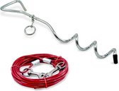 Hondenkabel met aanlegspiraal 4,5 meter - hondenlijn met grondpen / vastlegset