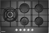AREBOS Inbouw gaskookplaat 70 cm met 5 gaspitten Glaskeramiek zwart kookplaat op gas