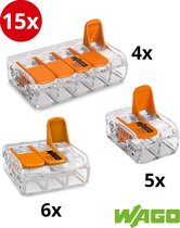Wago lasklemmen assortiment serie 221 - 2, 3 en 5 voudig (15 stuks)