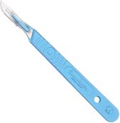 Een stevige en scherpe scalpel met 10 extra scalpel mesjes. Het handvat is voorzien van een anti-slip stuk waar u gedurende het snijden u duim en wijsvinger op kan rusten.