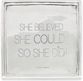 Dol op tegeltjes met een spreuk aan de muur? Dan is het She Believed bordje van Rivièra Maison echt iets voor jou. Dit tegeltje is namelijk van glanze...