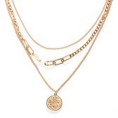 Laura Ferini Ketting Giavanna - Goudkleurige ketting met 3 lagen - 18K Geelgoud Verguld - Halsketting - Collier - Sieraad - Accessoires - Dames Ketting met Hanger - Muntje - Goud