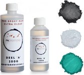 PNCreations Epoxy Ultra Clear Hars + 3 Kleuren | 300 Gram | Giethars + Verharder | Metallic Black, Snow Cristal White, Ocean Green | Pigmentpoeder | Kleurpoeder | Kleurpigment
