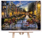 Schilderen Op Nummer Volwassenen - Do It Yourself Paintings - Amsterdam - Grachten - Fietsen - Brug - Gebouwen - Stad - Water - Nederland - 40x50 cm - Canvas
