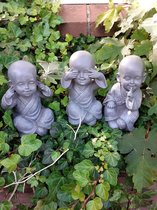 Boeddha beeld Shaolin horen,zien en zwijgen voor binnen of buiten 15x11x10 cm