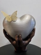 Hart Urn Gedragen op Handen - urn geschikt voor 3,3 liter as - hart - urn - handen - decoratie - inclusief vlinder